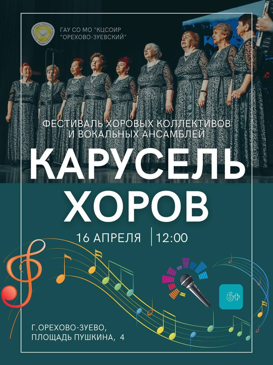 Фестиваль «Карусель хоров» пройдёт в Доме культуры на площади Пушкина 16 апреля. Начало в 12:00, вход свободный при наличии социальной карты.