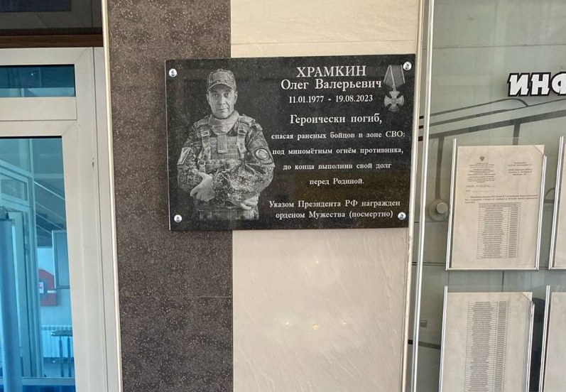 Памятную доску бойцу спецоперации Олегу Храмкину установили по инициативе коллег и друзей: мемориал его имени теперь украшает фойе автоколонны, в которой он когда-то работал.