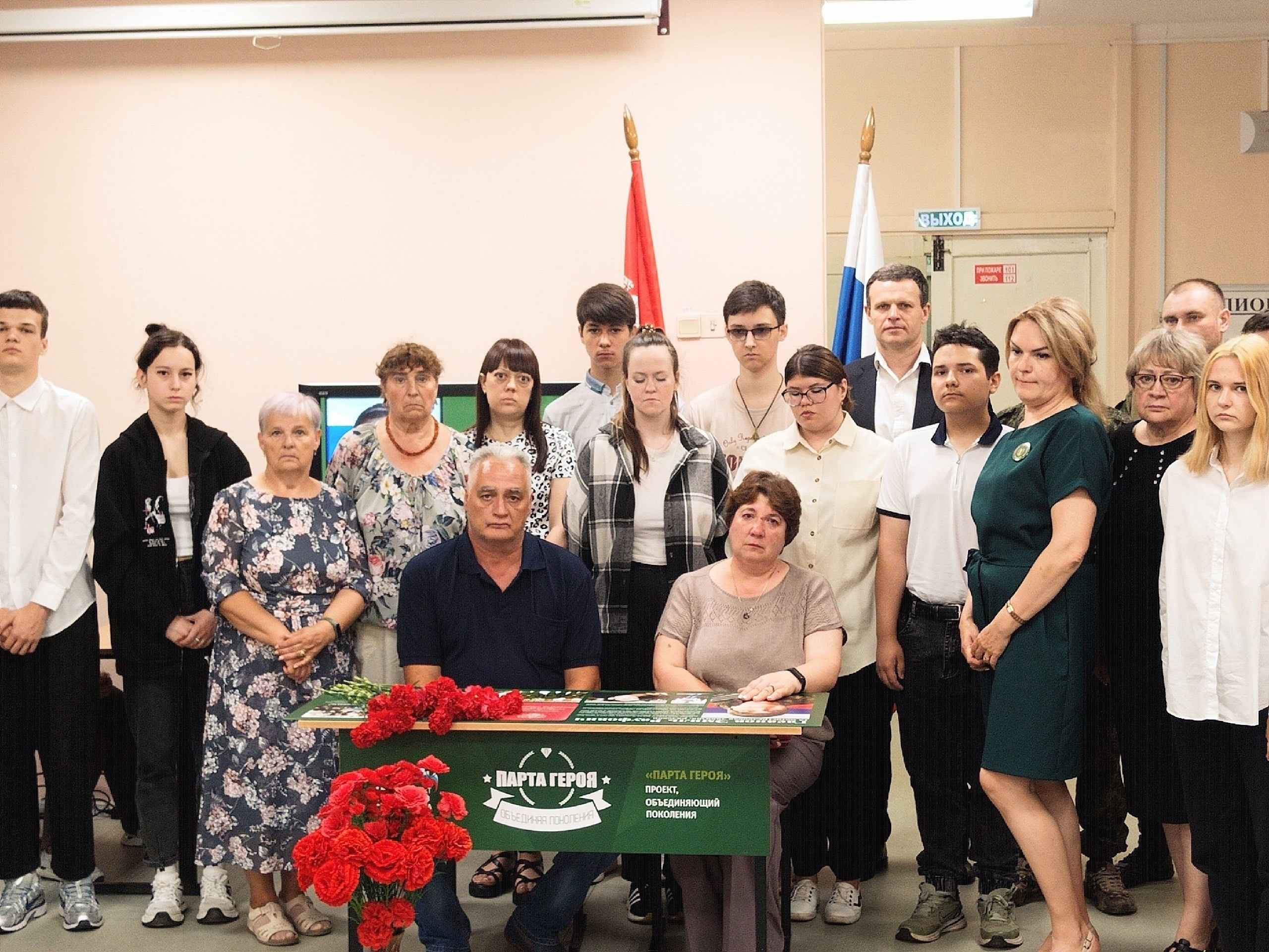 Церемония открытия Парты Героя прошла с участием родных Эмиля Гасанова, педагогов и студентов, руководителя Комитета семей воинов Отечества Подмосковья Марины Мигуновой, представителей Совета ветеранов г. Ликино-Дулёво.