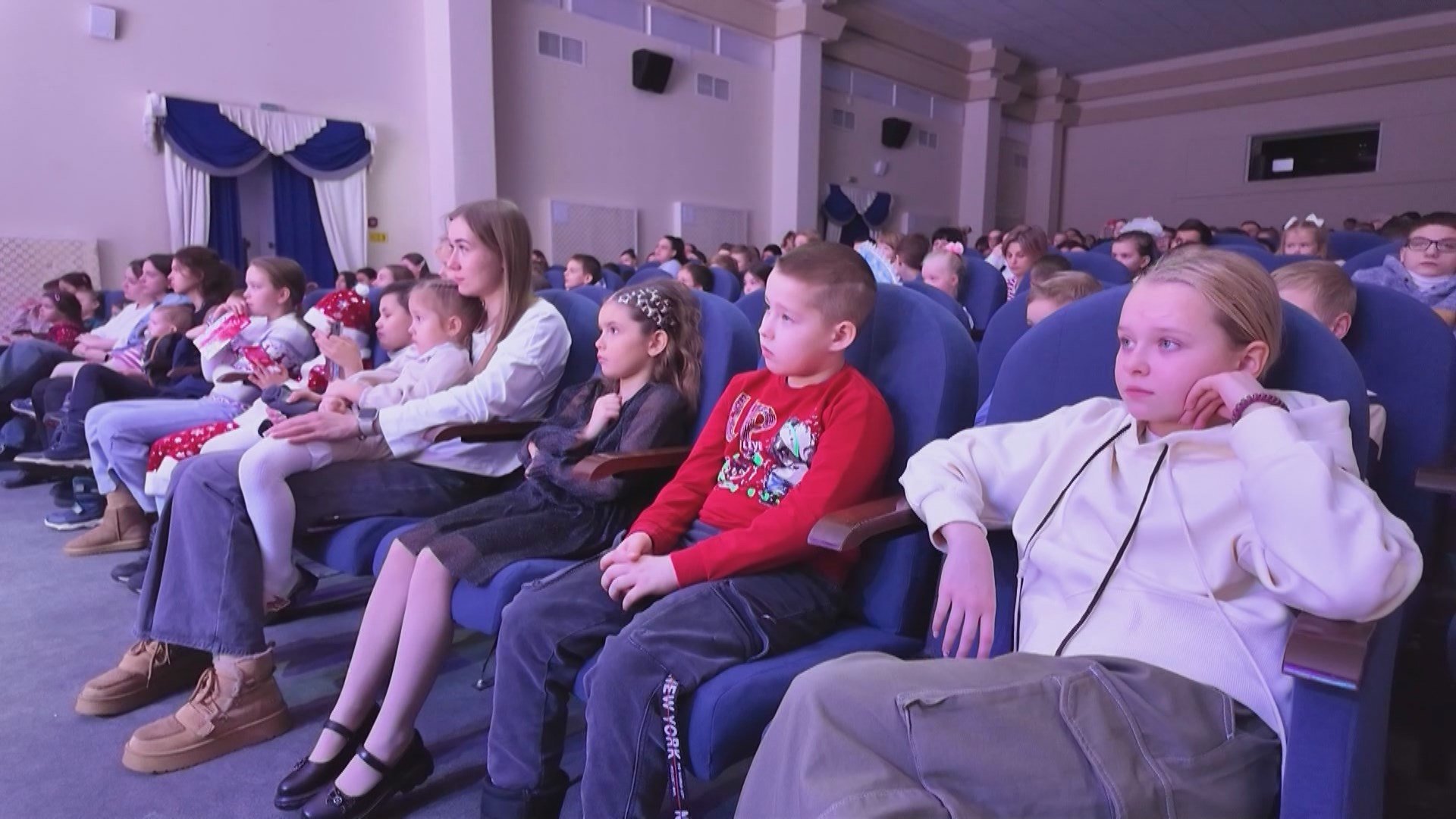 Спектакль «Снежный бал» стал главным событием праздникаПосле танцевального разогрева детей пригласили в зрительный зал, где их приветствовали Дед Мороз и Снегурочка.