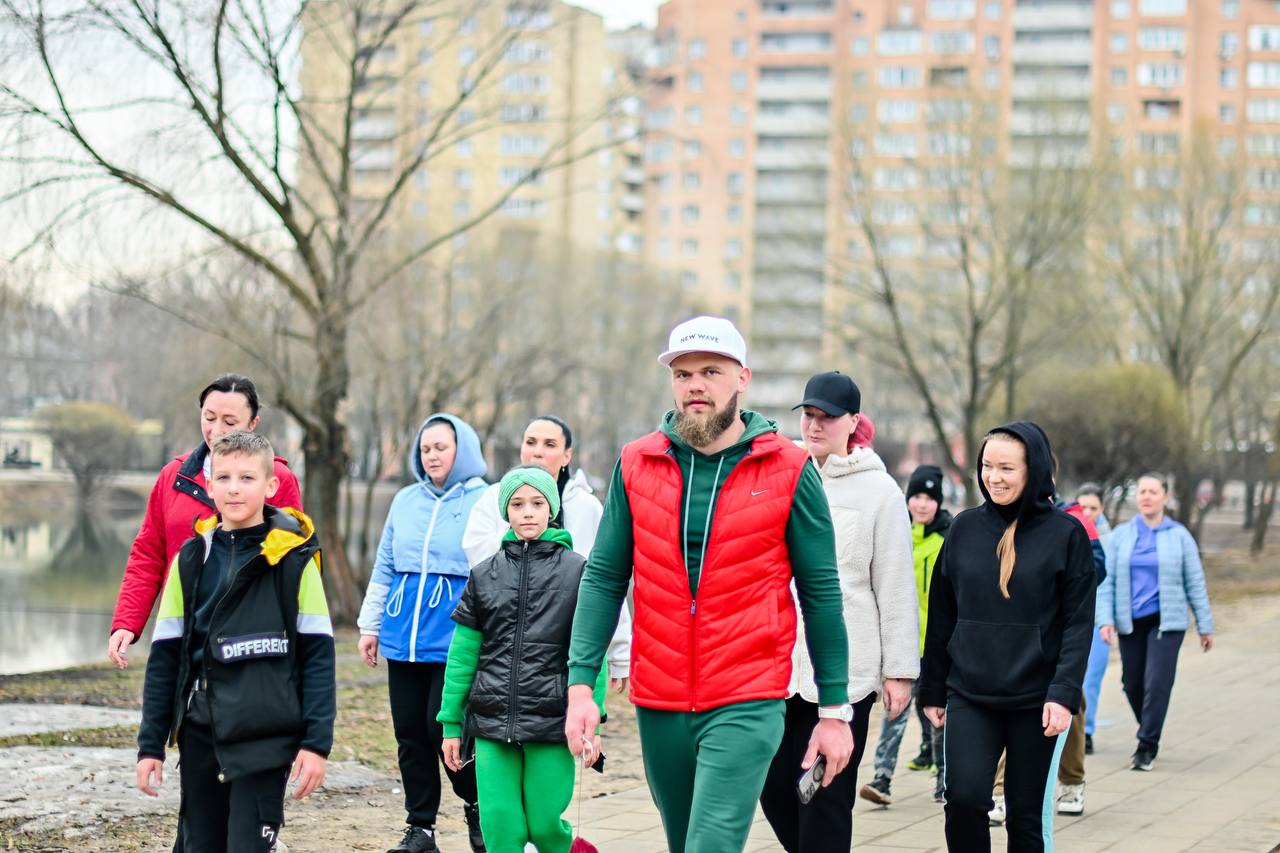 Началась спортивная акция центральной площади Наташинского парка. На нее пришли взрослые и дети. Самому младшему участнику - 11 лет. Спортсмены пробежали кросс разминочным бегом дистанцией в 3 километра, провели весёлую разминку. После Андрей Сухин показал общеукрепляющую программу на спортивной площадке парка.