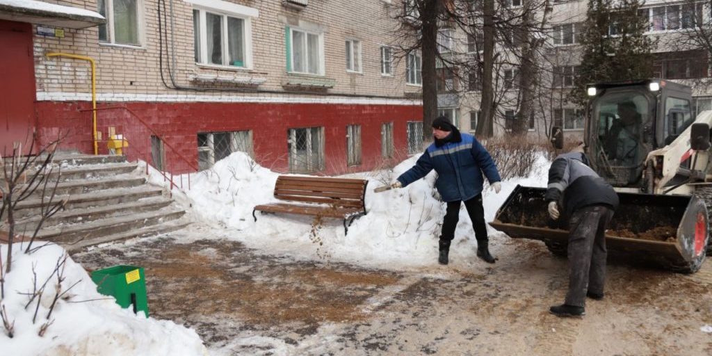 В Кашире проводят противогололедную обработку на дорогах, тротуарах, во дворах.