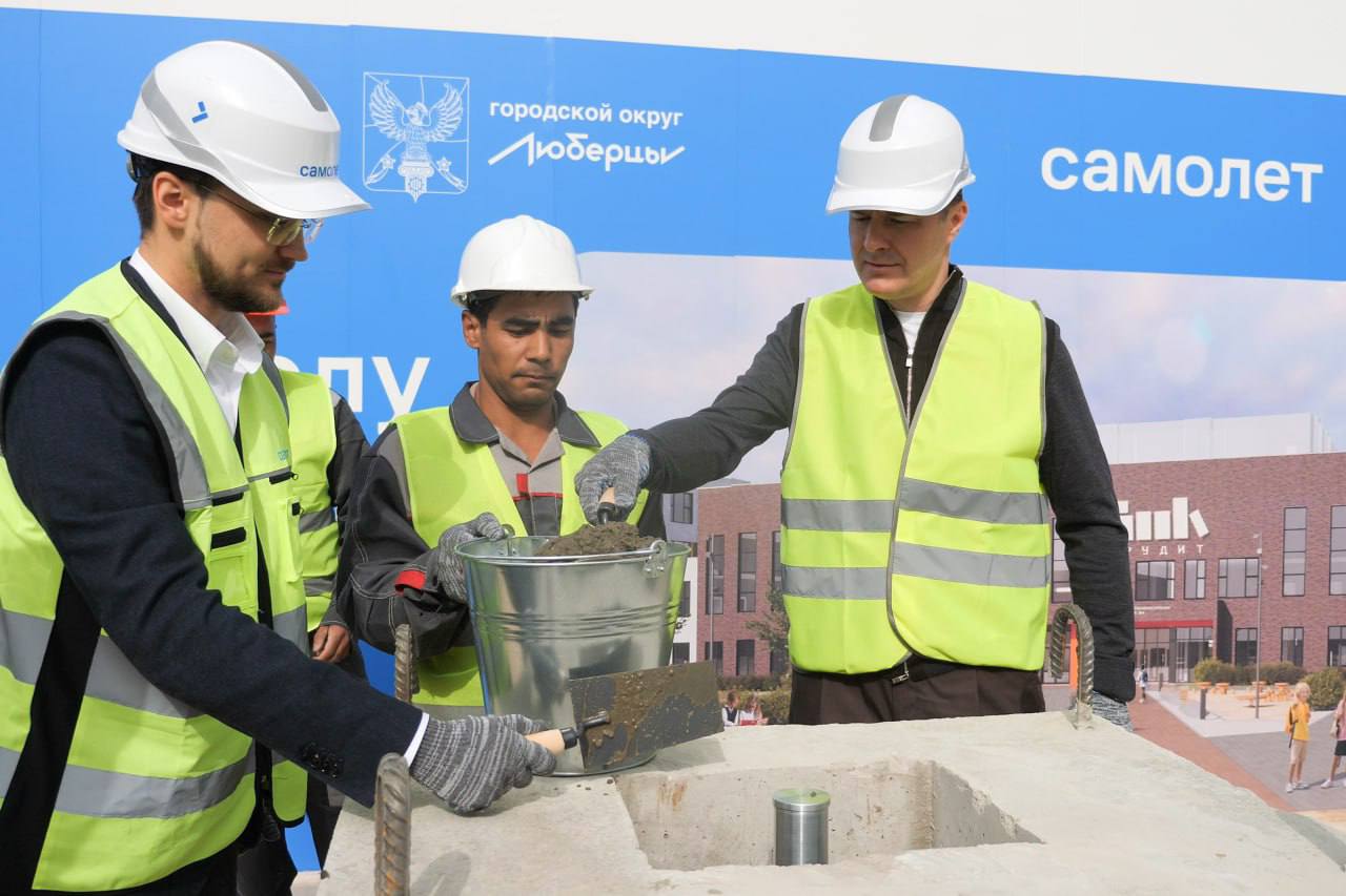 Глава городского округа Люберцы Владимир Волков в четверг вместе с генеральным директором СЗ «Самолёт-Девелопмент» Никитой Шуваловым заложили капсулу в основание новой школы в микрорайоне Зенино.