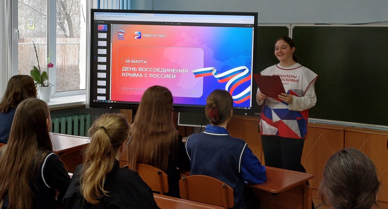 Волонтеры проводят в школах Рузского округа интеллектуальные игры, посвященные Дню воссоединения Крыма с Россией