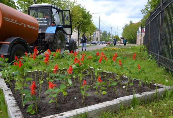 Заморозки позади, и сотрудники коммунальных служб приступили к высадке на клумбы растений, которые будут украшать округ летом.