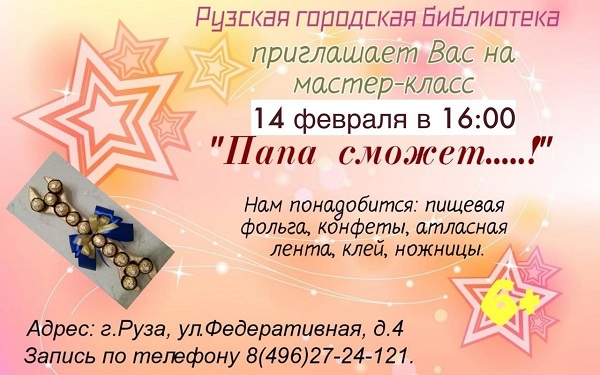 14 февраля в 16 часов в Рузской городской библиотеке состоится мастер-класс «Папа сможет».