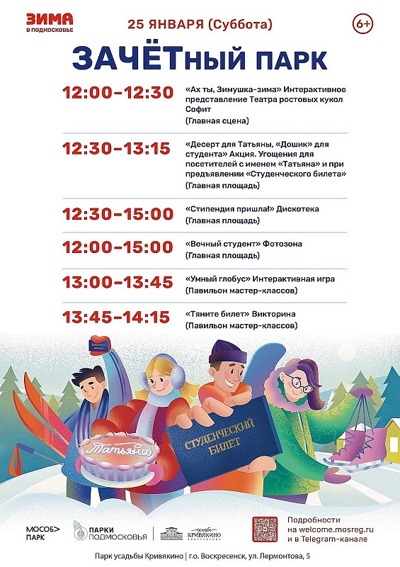 25 января парки Воскресенска пройдёт областное мероприятие «ЗАЧЕТный парк», приуроченное ко Дню студента и Татьянину дню.