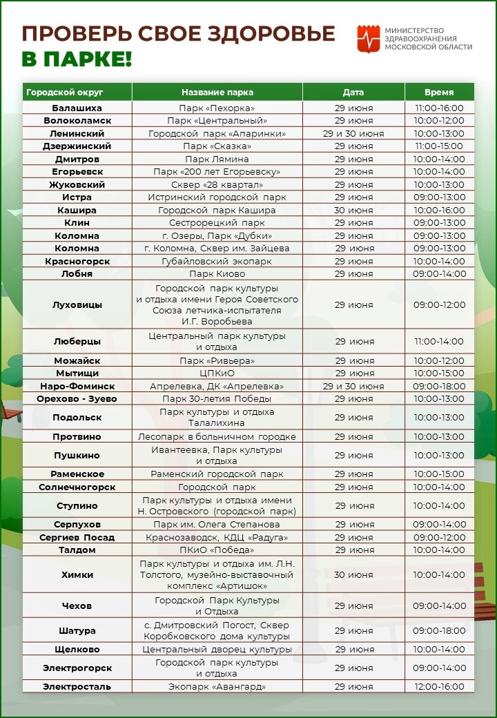 Жители Апрелевки смогут проверить свое здоровье в парке на этих выходных