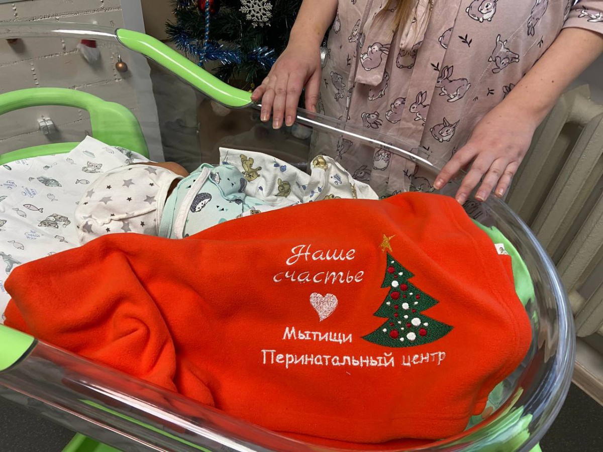 В перинатальном центре Мытищ продолжается новогодняя акция «Декабрята». В ее рамках маме и малышу дарят теплый плед с символикой перинатального центра и Нового года.